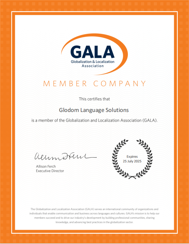 今天,我們很高興依然成為全球化與本地化協(xié)會(huì)(GALA)的一員!這意味著我們致力于維護(hù)行業(yè)最高標(biāo)準(zhǔn)的決心。GALA的使命與我們的使命一致——通過(guò)建立專業(yè)社區(qū)、分享知識(shí)、推進(jìn)全球化領(lǐng)域的最佳實(shí)踐,助力客戶出海,并推動(dòng)我們行業(yè)的發(fā)展。